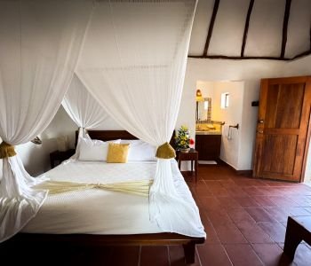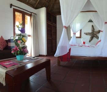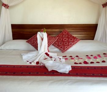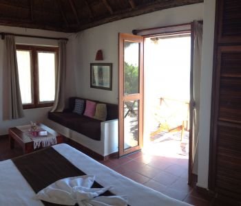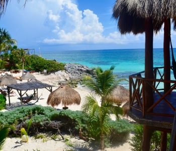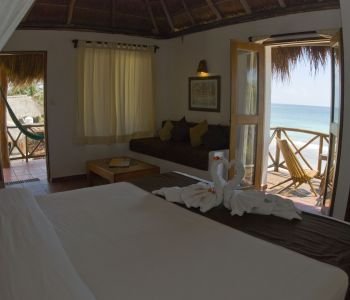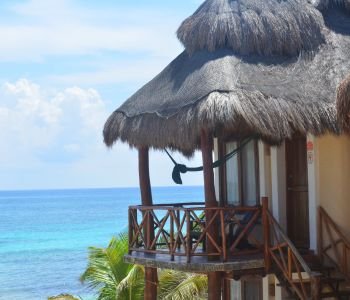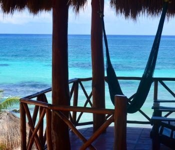 All of these rooms feature colorfully painted details, palapa roofs, and locally made handicrafts that reflect the simplicity and rustic charm of this hotel on Tulum beach.
